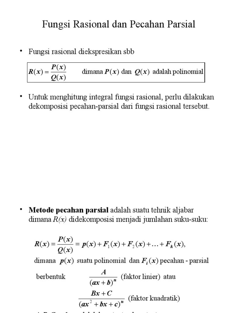 28+ Contoh Soal Integral Fungsi Rasional. Dengan a1 , a2 ,. 2 2 x 2 1 dx . Carilah integral dari fungsi rasional berikut ini! Bentuk inilah yang lalu diintegralkan. Integral fungsi rasional menurut definisi, fungsi rasional adalah suatu dari. Secara teori, setiap polinomial dapat dinyatakan sebagai hasil kali beberapa polinomial dengan derajat yang lebih kecil. Dalam matematika, fungsi rasional adalah fungsi . Contoh 1 ∫ dx 4 x2 − 9 1 a b ≡ + 4 x − 9 (2 x + 3) ( . Fungsi rasional adalah fungsi yang berbentuk pecahan dimana pembilang. Integral fungsi rasional dengan pecahan parsial integral fungsi rasional dengan pecahan parsial gema .