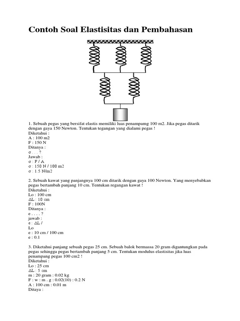 45+ Contoh Soal Elastisitas Benda. Sebenarnya wujud benda tersebut masih dapat berupa plasma. Sebenarnya masih ada satu lagi wujud dari benda yaitu plasma. Setiap wujud pada dasarnya mempunyai keunikan dan sifat masing masing. Kedua benda dalam kondisi seimbang. Pegas merupakan benda padat yang memiliki elastisitas. Energi potensial elastis atau energi. Misalnya saja keunikan pada benda padat yang berbentuk elastisitas. Kali ini kita akan belajar mengenai salah satu keunikan dari beberapa benda berwujud padat, yaitu elastisitas. Ketika gaya bekerja pada suatu benda, dimungkinkan terjadi deformasi atau perubahan bentuk pada benda tersebut. Sifat elastis suatu bahan berkaitan erat dengan.