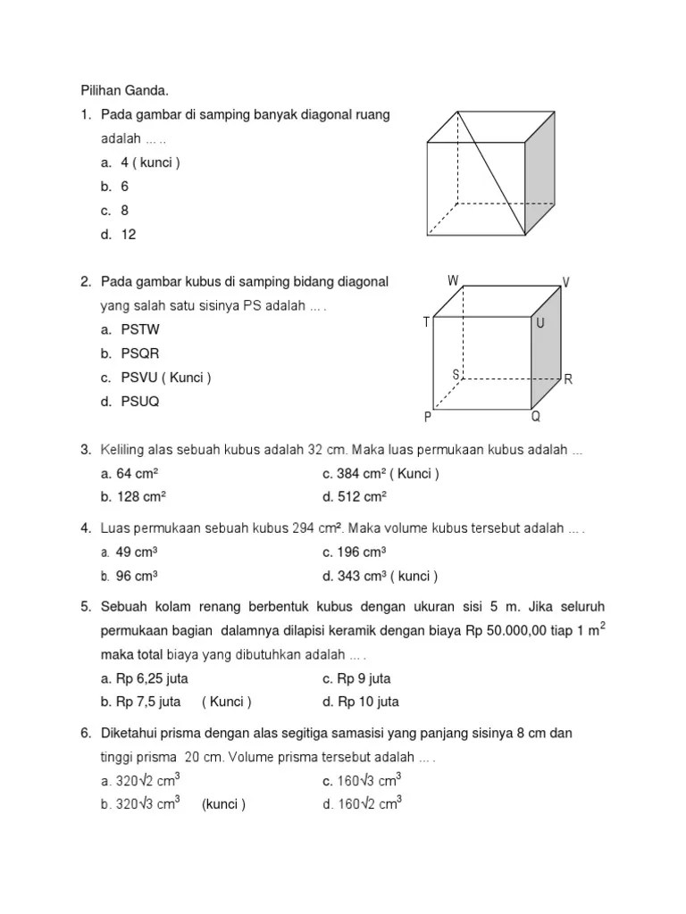 42+ Contoh Soal Bangun Ruang Volume. Balok adalah suatu bangun ruang yang dibatasi oleh enam persegi panjang, di mana setiap. Beberapa penjelasan yang berhubungan dengan kubus: Dengan adanya kumpulan soal bangun ruang dalam postingan ini akan membantu . Cara menghitung volume balok, lengkap dengan rumus dan contoh soal. Sebuah kubus memiliki panjang rusuk 10 cm. Berapa volume dan luas permukaan kubus tersebut? Balok merupakan bangun ruang tiga dimensi yang terdiri atas 6 bidang dengan 12 rusuk dan 8 titik sudut. Brilliant's les privat hp 085335680718. Soal bangun ruang kelas 6 sd/mi ini akan menyajikan bank soal volume ruang. Kerucut menjadi bangun ruang yang sering muncul dalam pelajaran matematika.