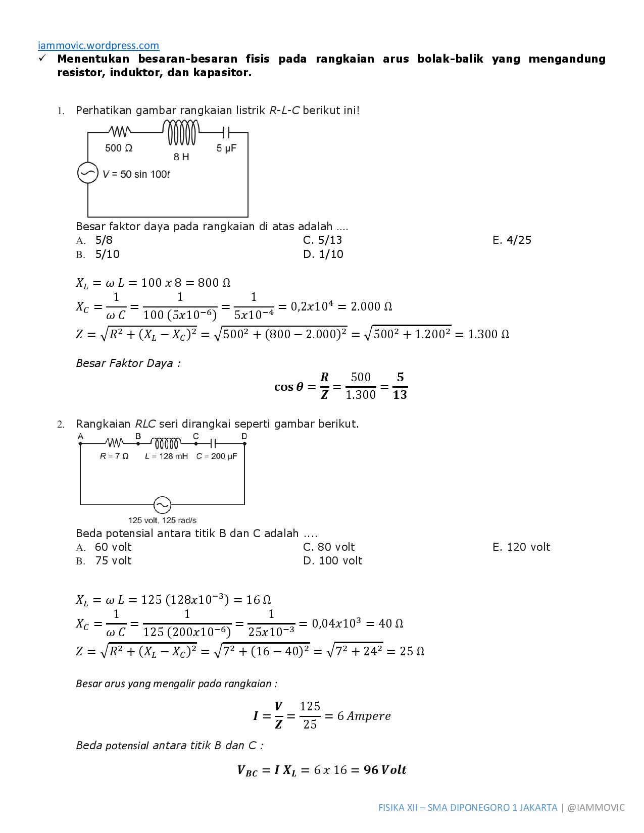46+ Contoh Soal Fisika Rlc. 3 perhatikan gambar rangkaian listrik berikut Sebelum mengerjakan soal di bawah ini, ada baiknya membaca materi … Oct 08, 2019 · soal dan pembahasan rangkaian seri rlc (rasistor, induktor dan kapasitor) pada arus dan tegangan bolak balik ( ac ) soal 1 : Resistor dengan hambatan 8 ω induktor dengan reaktansi induktif 22 ω dan sebuah kapasitor dengan reaktansi kapasitif 16 ω dirangkai seri dan dihubungkan ke sumber arus bolak balik dengan tegangan efektif. Sebelum anda mempelajari bentuk soal yang beragam itu di bawah ini saya tuliskan dasar penguasaan materi rangkaian rlc pada soal nomor 1, saran. Only a member of this blog may post a comment. Frekuensi resonansi untuk rangkaian rlc terjadi saat reaktansi induktif sama besar dengan reaktansi kapasitif, dengan nilai frekuensi : Soal ujian nasional fisika sma tahun 2009/2010) pembahasan. Jun 15, 2021 · kali ini tim kami akan membagikan contoh soal dan pembahasan rangkaian arus bolak balik dan pembahasannya untuk kamu pelajari dalam persiapan ulangan harian ataupun ujian semester. Sebelum anda mempelajari bentuk soal yang beragam itu di bawah ini saya tuliskan dasar penguasaan materi rangkaian rlc pada soal nomor 1, saran.